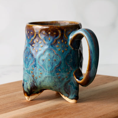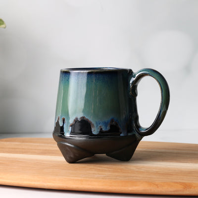 Handmade Ceramic Footed Mug - Electric Jellyfish Glaze